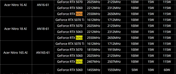 RTX 5050入门笔记本功耗居然涨了!最低也有50W |